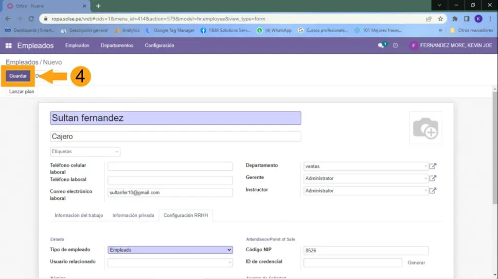 3) Colocamos los datos necesarios del empleado