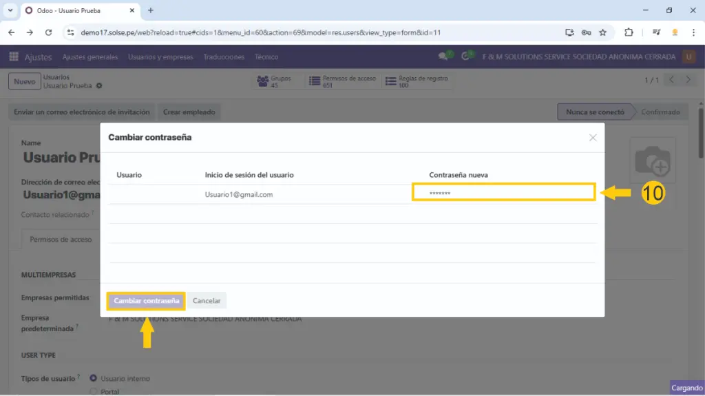 10) Colocamos la contraseña deseada y luego hacemos clic en "Cambiar la contraseña