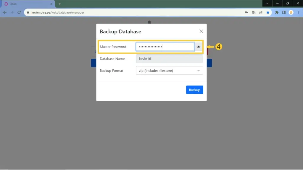 3) Luego para poder sacar el backup damos clic en "Backup".