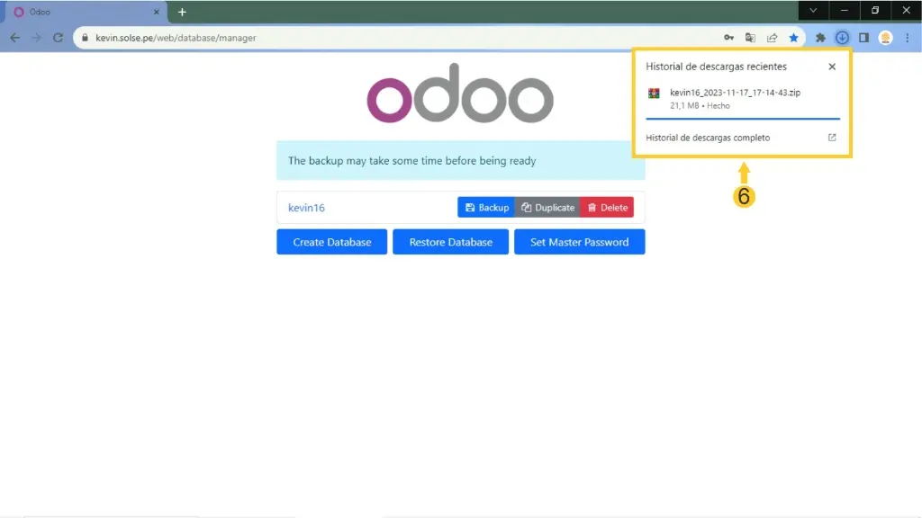 6) Observamos que se ha descargado correctamente el backup.
