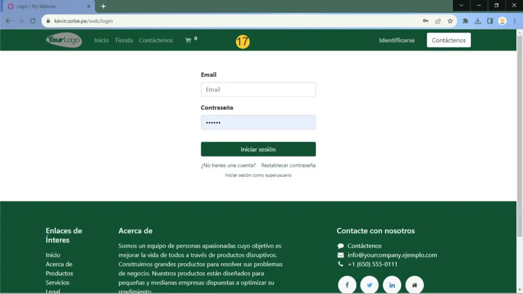 17) Colocamos el correo y contraseña correspondiente y entramos a nuestra base, los datos estarán según el backup que hemos colocado.
