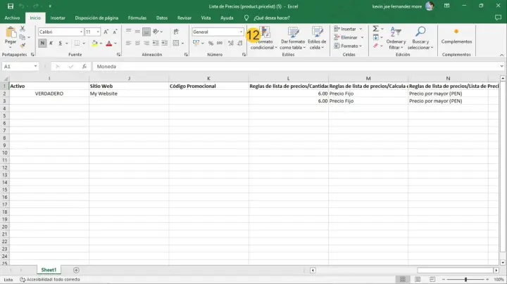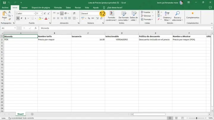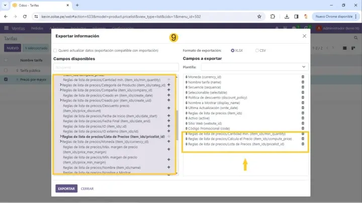 3) En esta ocasión esta lista de precio vamos a exportar.