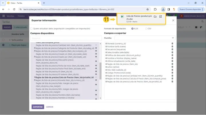 En esta oportunidad te vamos a enseñar como poder exportar los datos de lista de precio desde el módulo de venta en odoo v.16