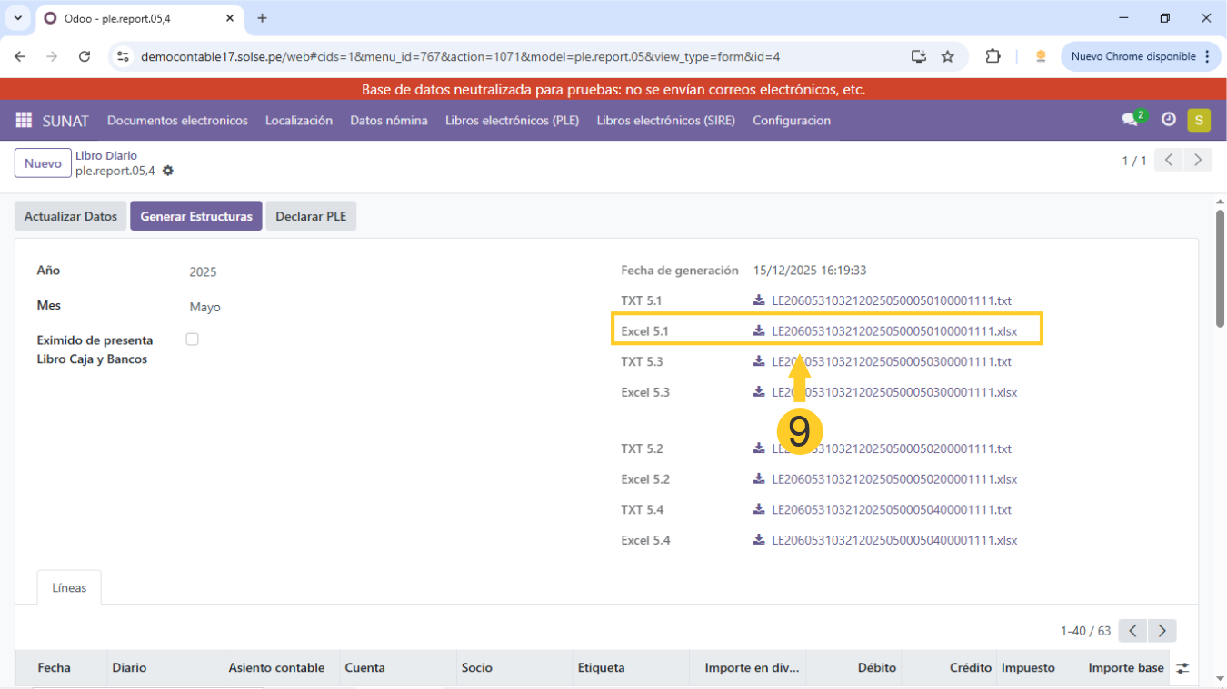 9) Podemos observar en Excel la información en el Excel 5.1 damos clic para poder descargar.