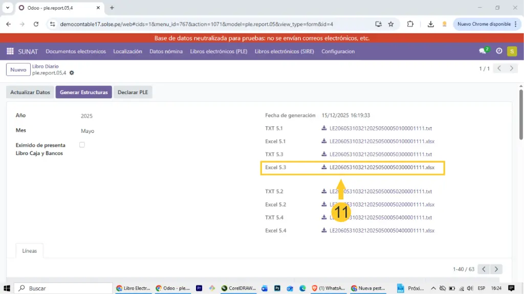 11) Podemos observar en Excel la información en el Excel 5.3 damos clic para poder descargar.