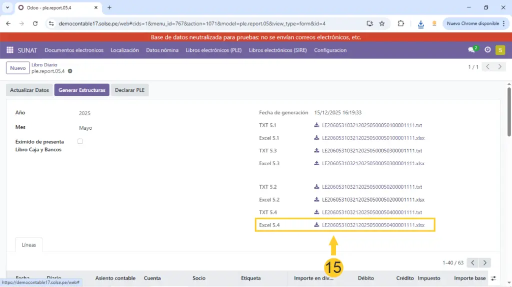 15) Podemos observar en Excel la información en el Excel 5.4 damos clic para poder descargar.