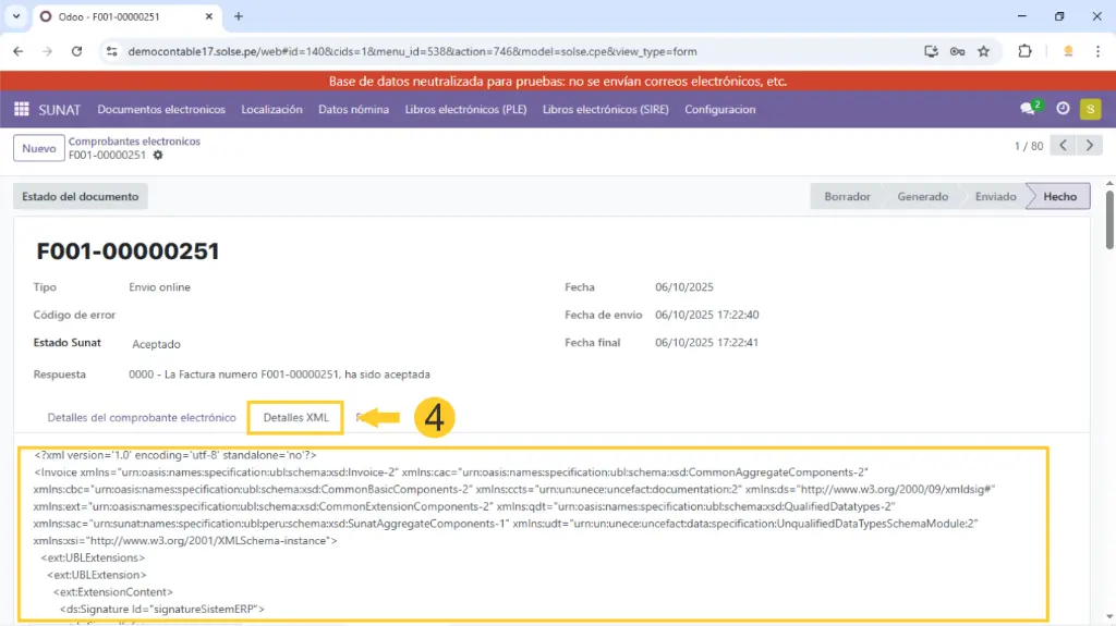 4) Damos Clic en "Detalles XML", para poder observar el detalle de XML en código.