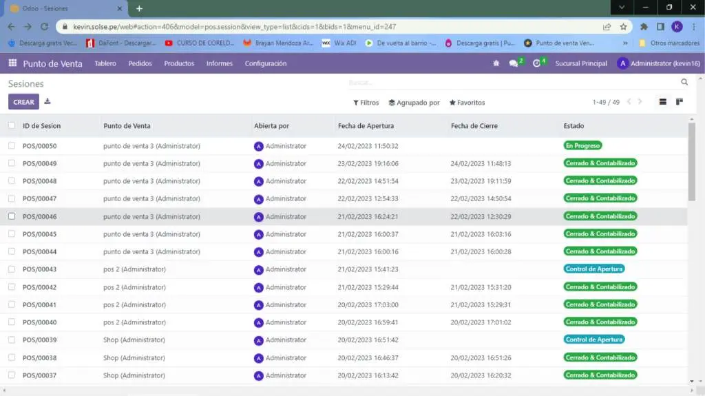 3) Elegimos la sesión en la que deseamos generar el reporte de venta actual.