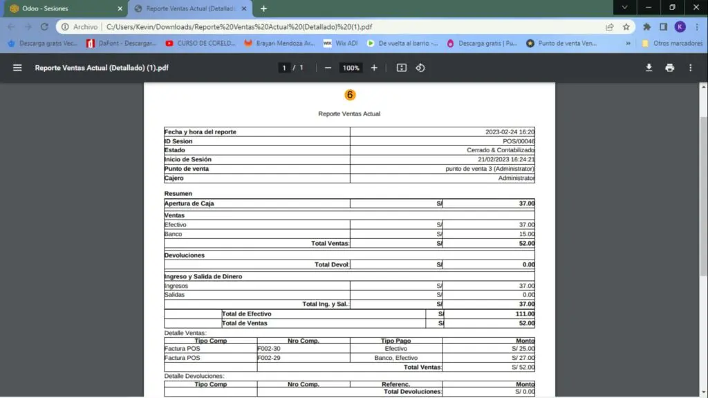 5) Se nos descargará un PDF donde estará el reporte de venta de POS.