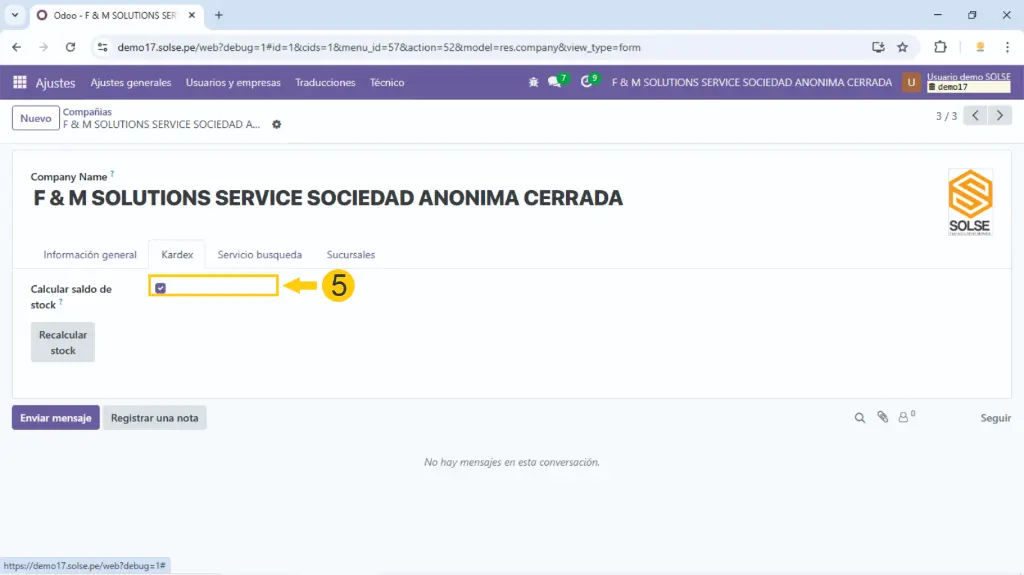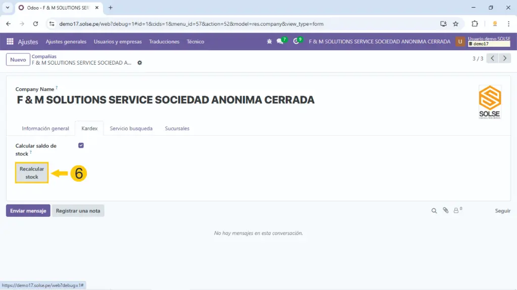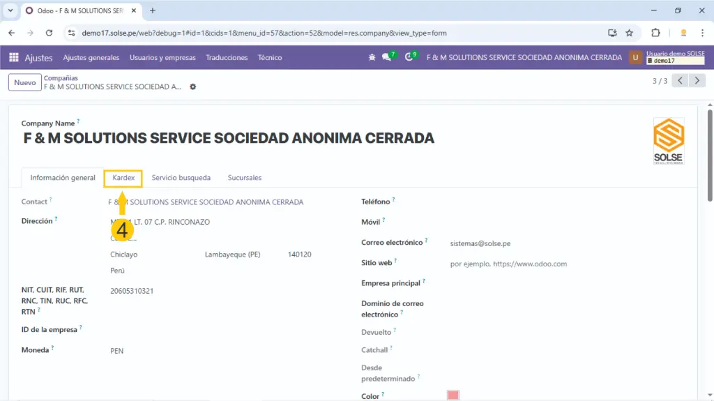 6) Hacemos clic en la compañía que vamos a agregar el Kardex.