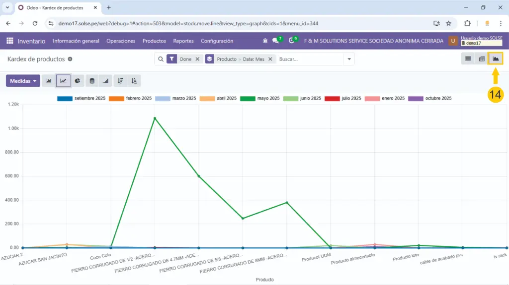 Aparecerá los movimientos del producto esta vez por mes.
