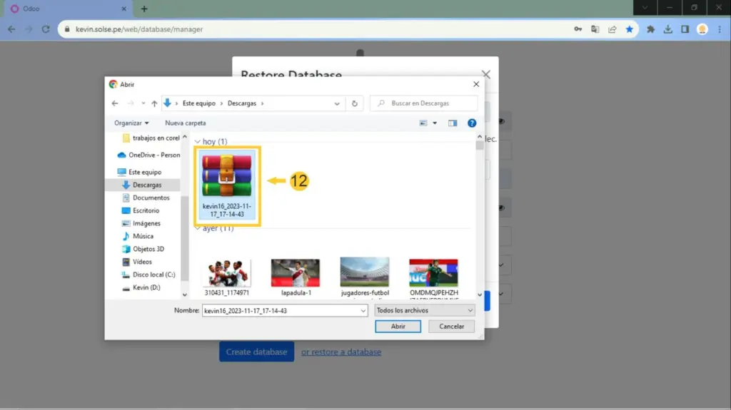 12) escogemos el backup que tenemos y damos clic en abrir.