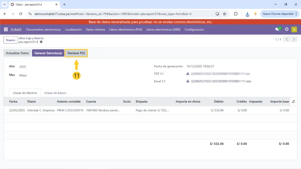 11) Luego si ya no deseamos editar el registro damos clic en "Declarar PLE". Ya no te dejara editar nada mas sobre ese registro.