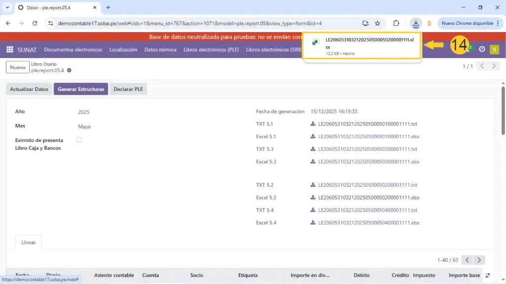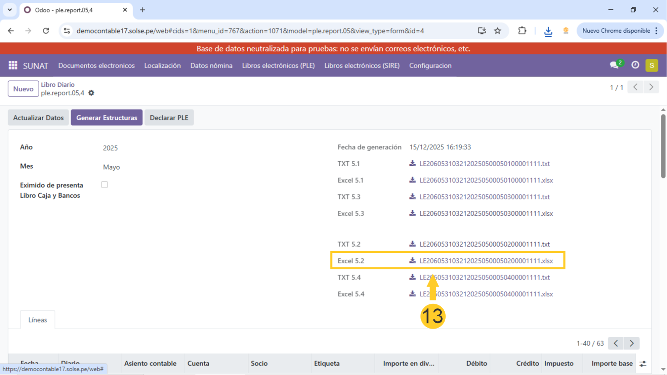 13) Podemos observar en Excel la información en el Excel 5.2 damos clic para poder descargar.
